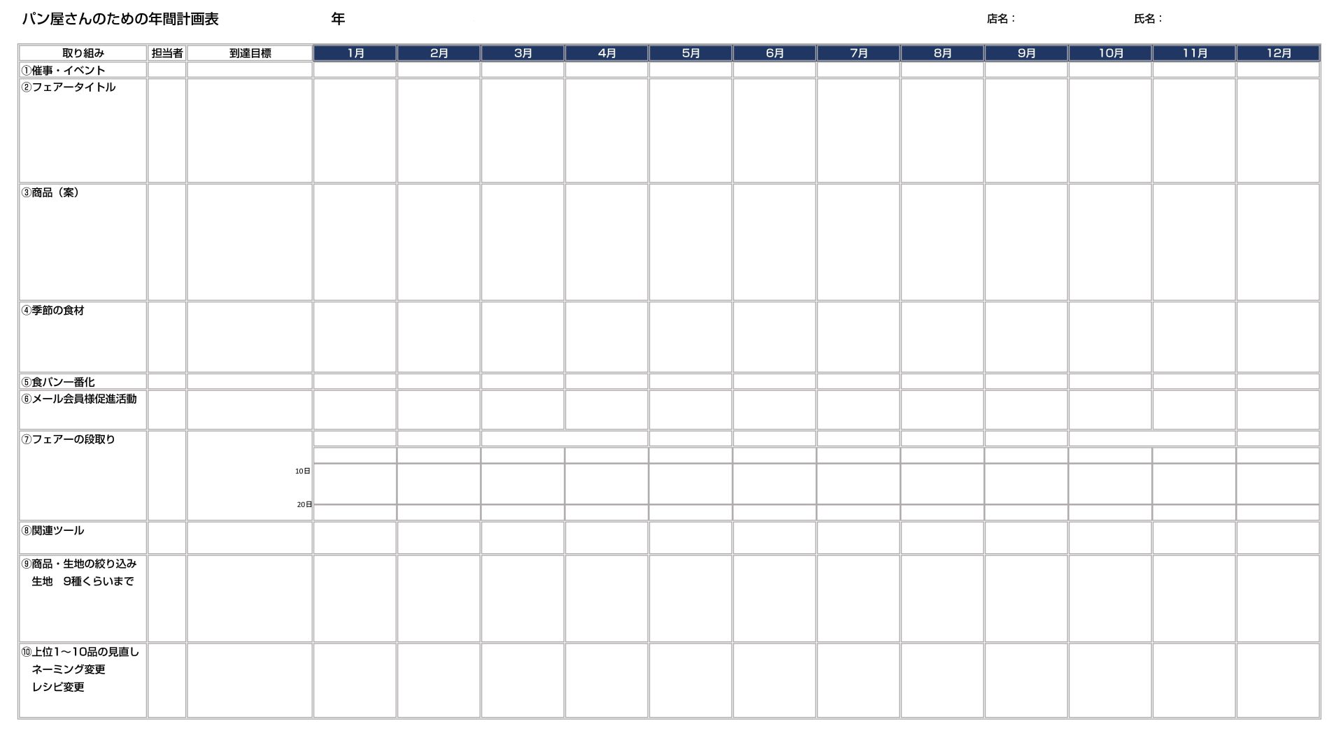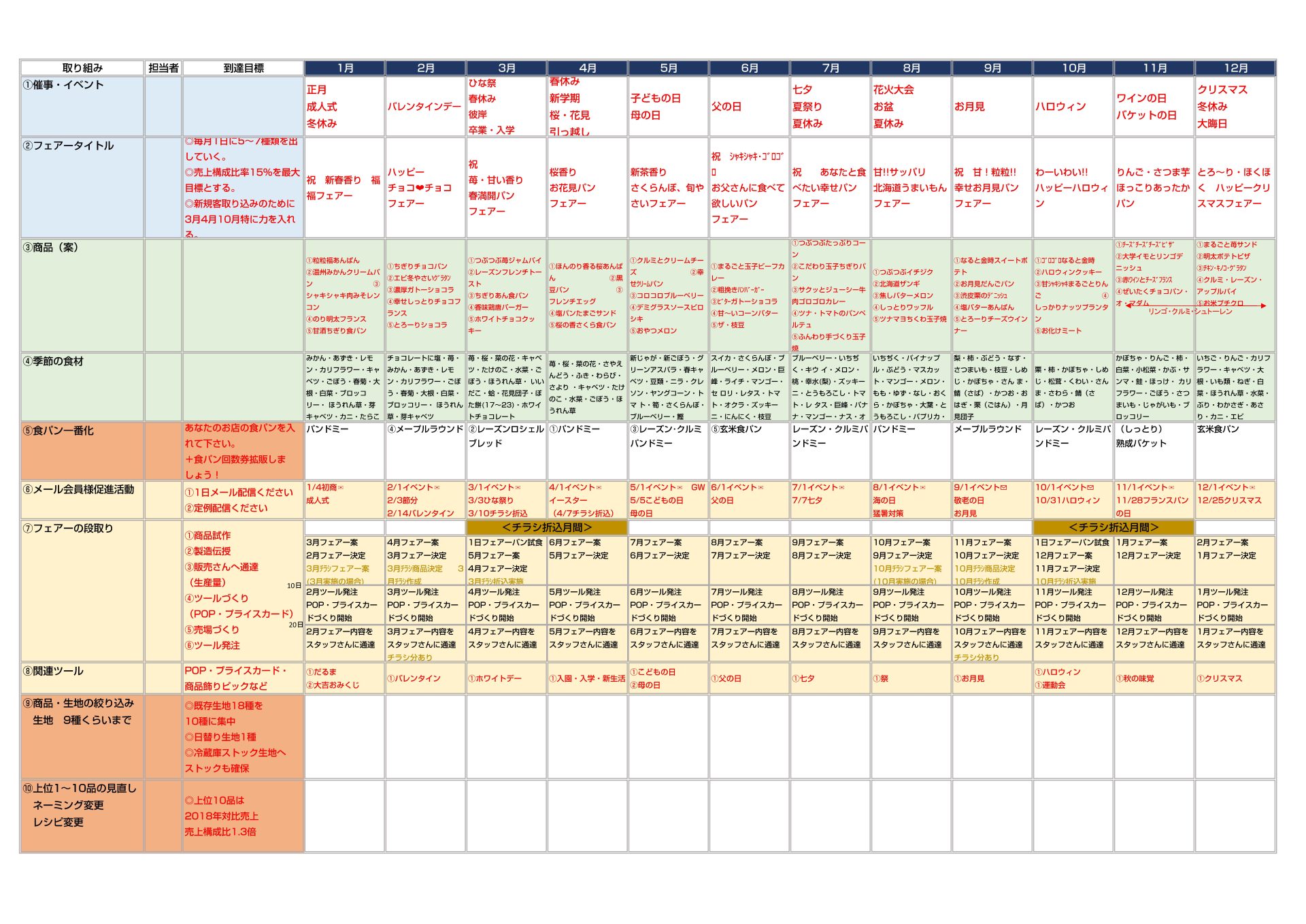 パン屋さんのための年間活動計画表